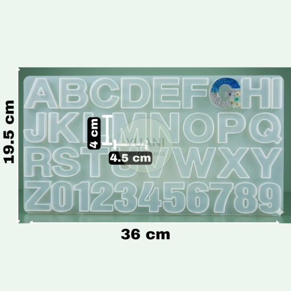 Medidas aproximadas de cada cavidad: 4 x 4 cm (letras), 4 x 2.8 cm (números)