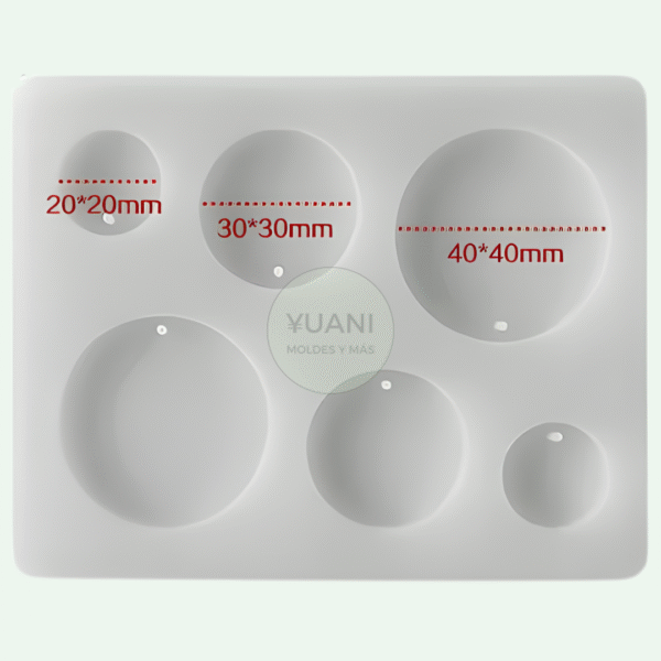 Modelo colgantes/caravanas redondos, 6 cavidades (2 cavidades de cada tamaño)