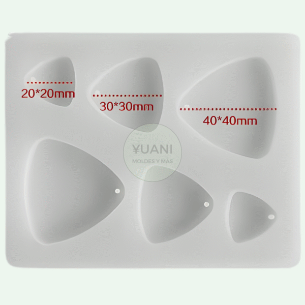 Modelo colgantes/caravanas triangulares redondeados, 6 cavidades (2 cavidades de cada tamaño)